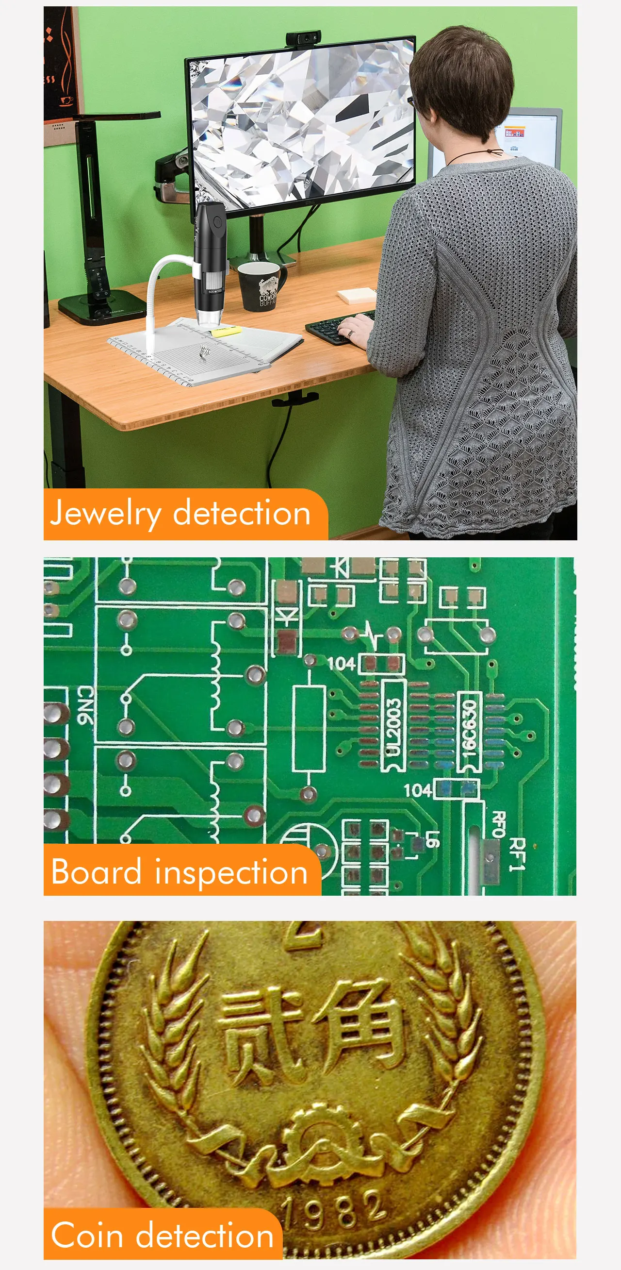 aha uygundur ve doğayı ve slayt, bozuk para, PCB, mücevher, böcek ve daha fazlası gibi mikroskobik nesneyi keşfetmek isteyen çocuklar, yetişkinler ve profesyoneller için mükemmeldir.