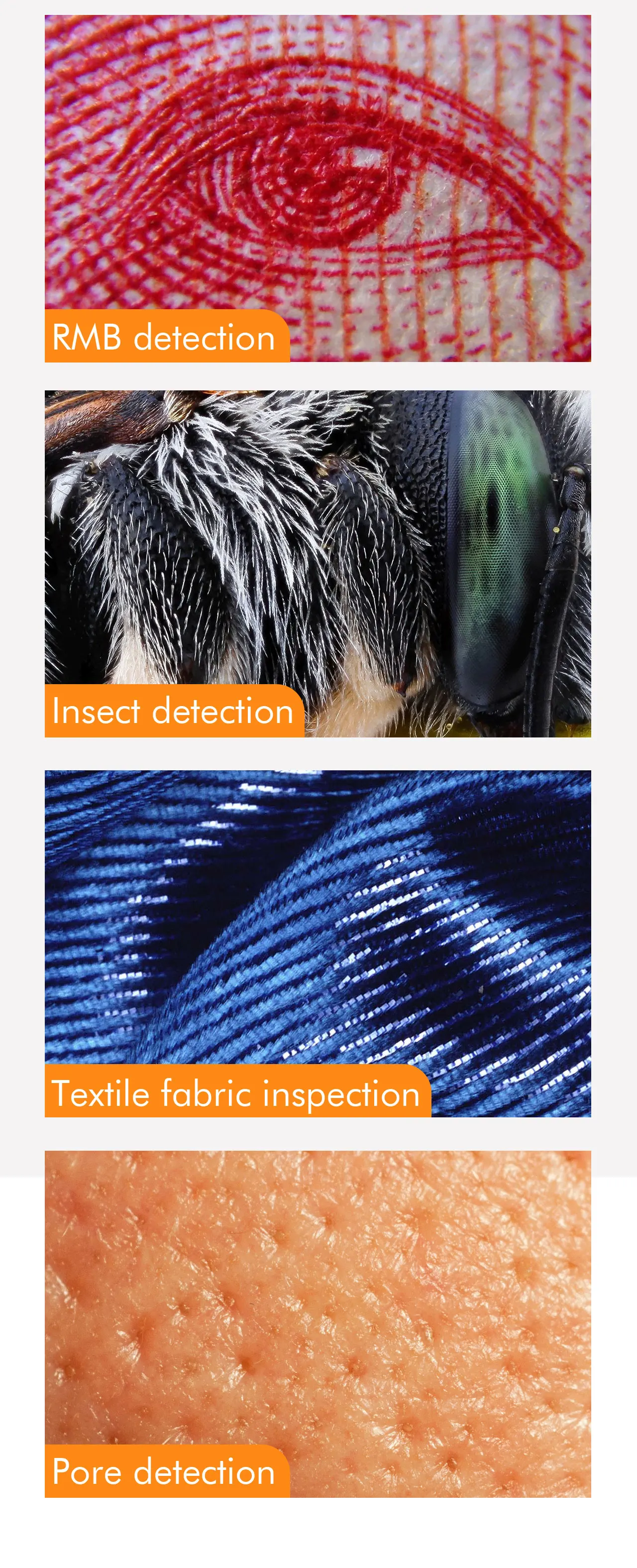 Geniş kullanım alanı: tekstil incelemesi, baskı kontrolü, endüstriyel muayene, eğitim amaçlı, saç muayenesi, cilt muayenesi, mikrobiyolojik gözlem, mücevher ve madeni para muayenesi, görsel yardım vb.