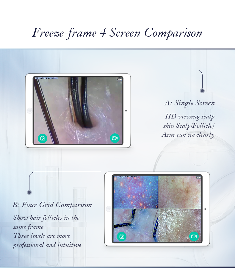 2. Saç derisi yağ içeriğini, saç nemini, esnekliğini vb. test etmek için uygundur. Saç derisi ve saç kökü problemlerini çözmek için idealdir.
